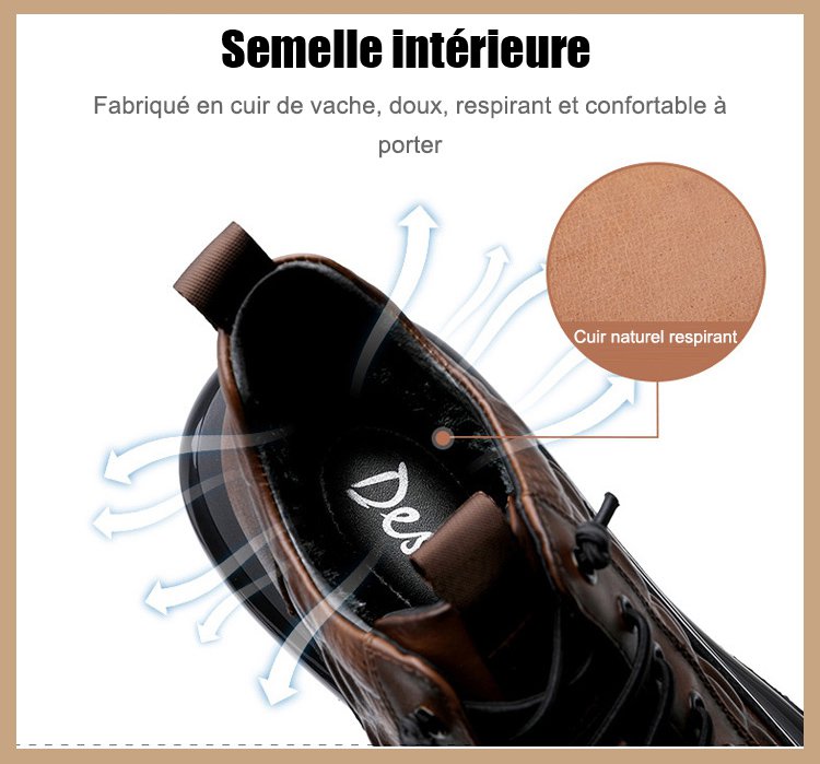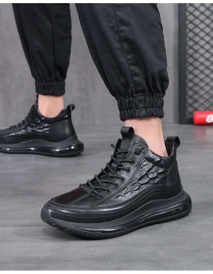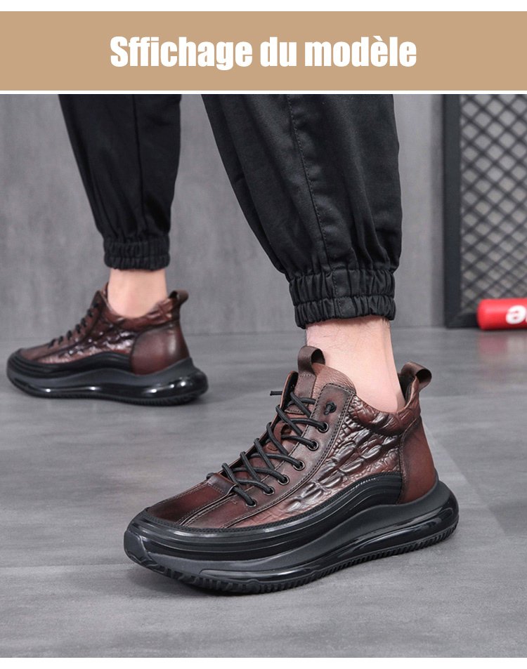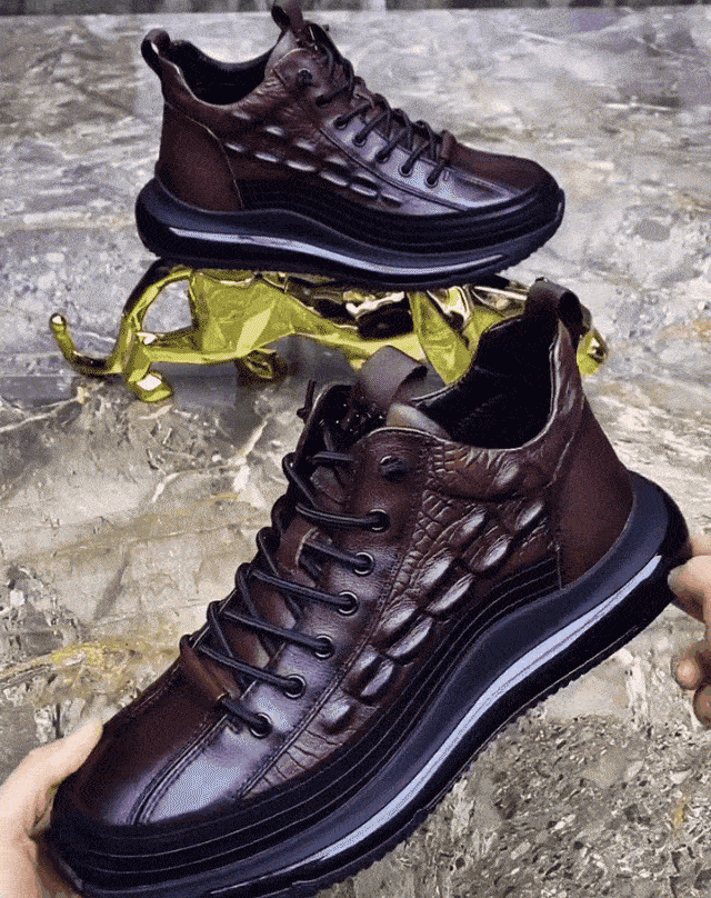 Chaussures de luxe italiennes en crocodile, à semelle épaisse et à coussin d'air, pour hommes.