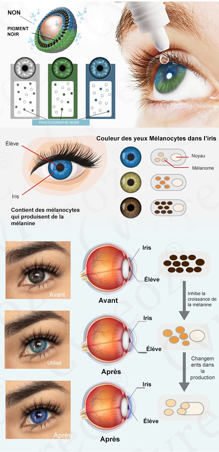 Gouttes oculaires colorées pour soulager la fatigue oculaire
