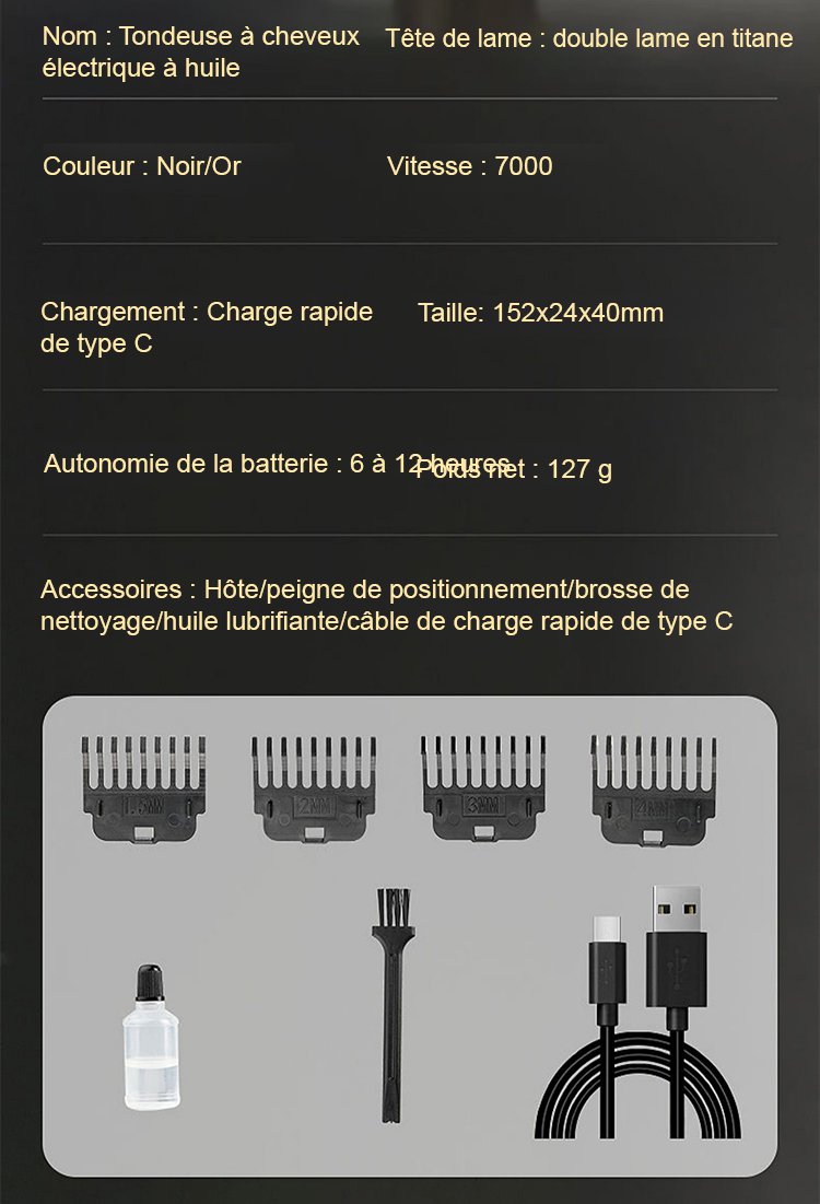 【Silencieux et sans blocage】Tondeuse électrique à huile pour la sculpture des cheveux.