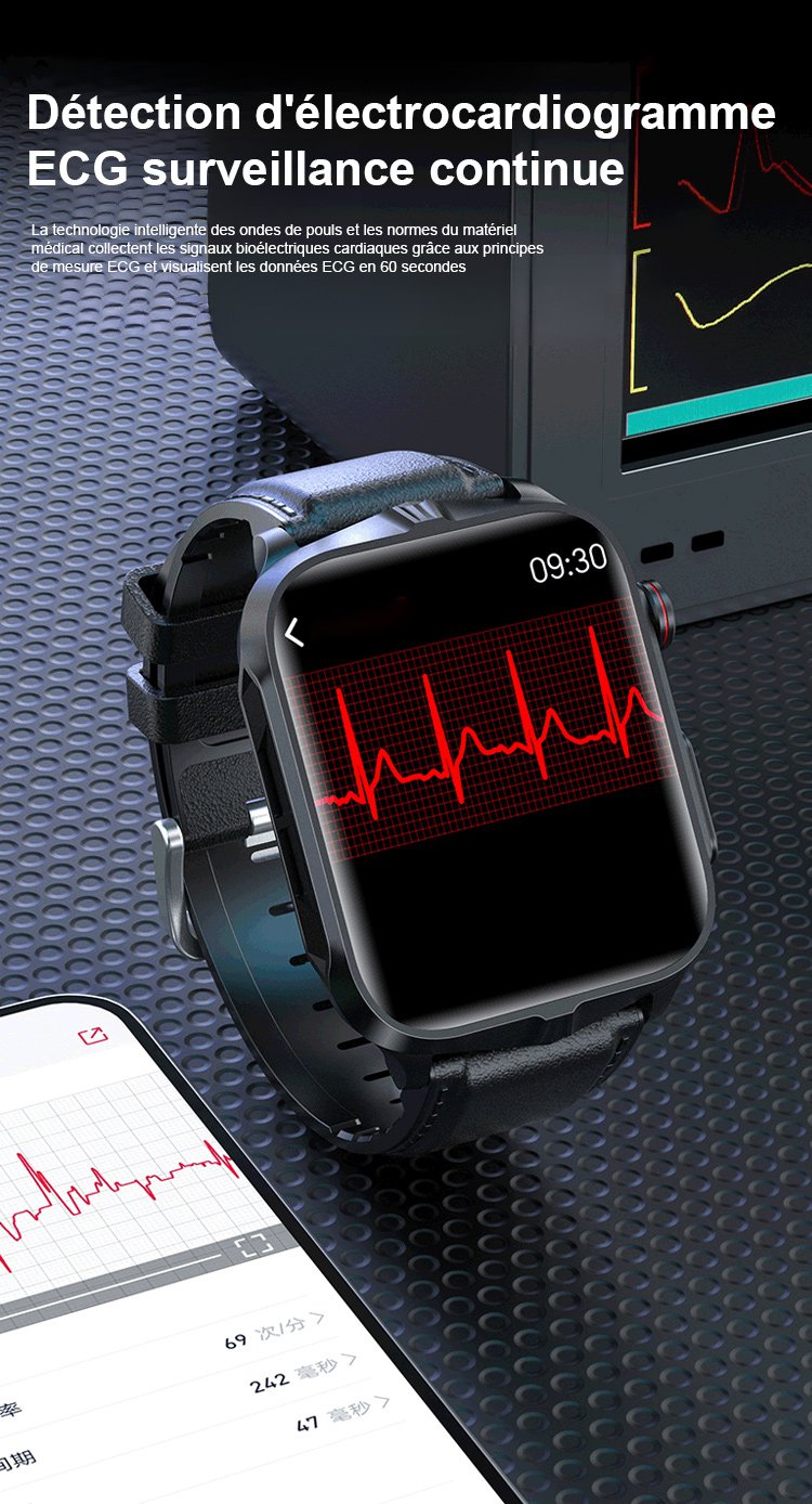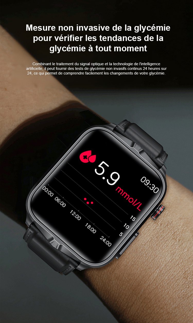 Montre intelligente de surveillance non invasive de la glycémie, de l'ECG et de la pression artériel