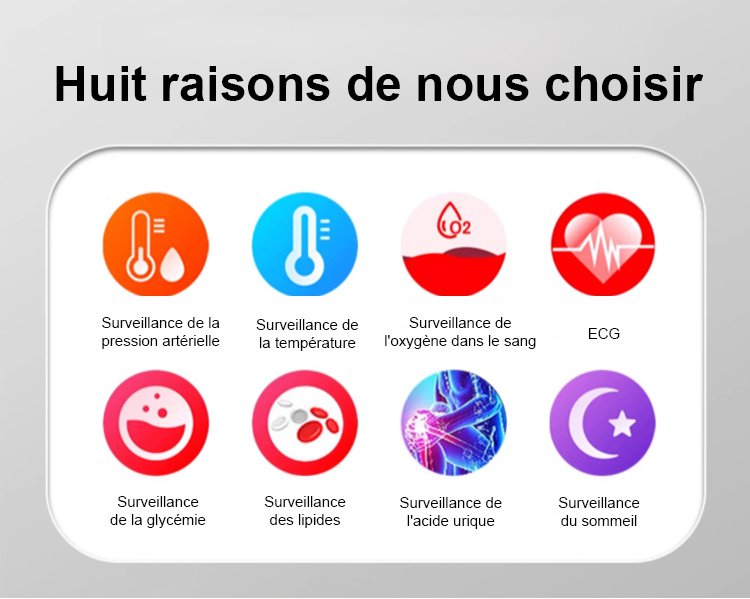 Mesure de la glycémie sans aiguille, surveillance complète de la pression artérielle électrocardiaque, santé sans souci!