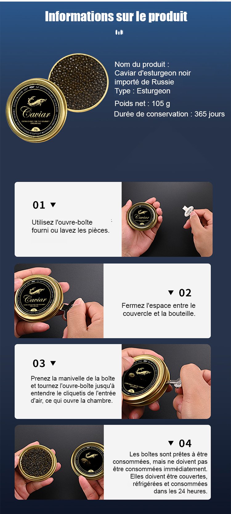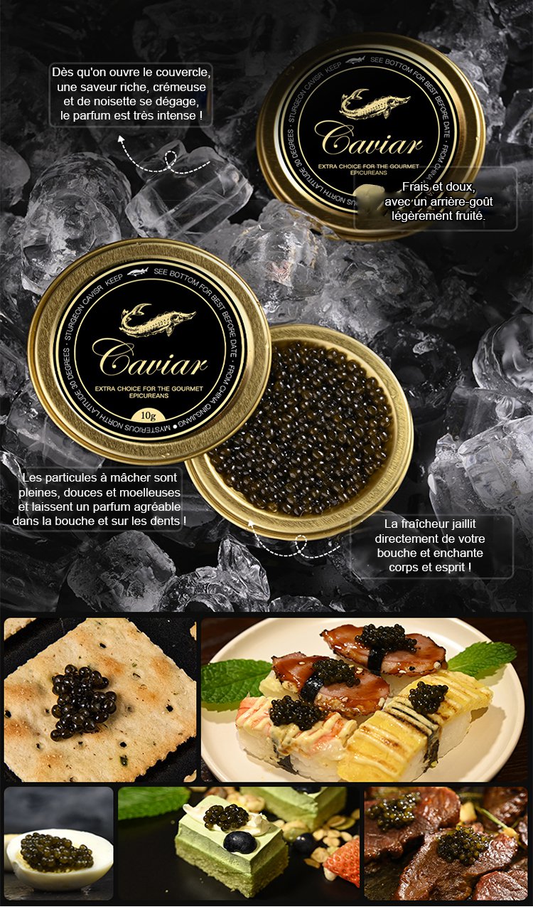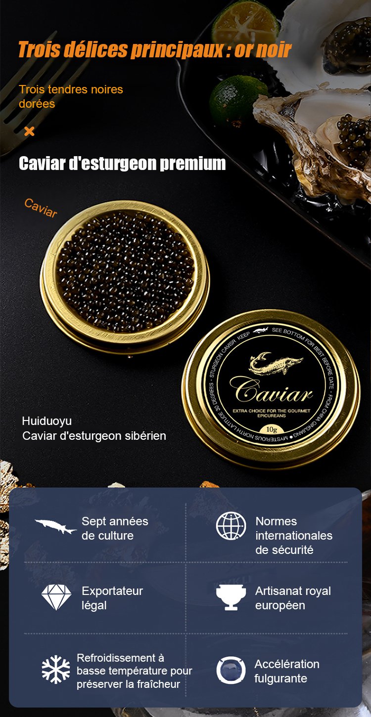Caviar d'esturgeon noir de la mer Caspienne importé